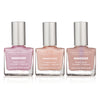 The Makeover Triple Play Manicure Set features our iconic Pink hue, alongside two gorgeous new shades: shimmering Lilac and sophisticated Mocha. Your new manicure staples will instantly achieve healthier looking nails by cleverly concealing nail imperfections while treating nail damage with its strengthening and nourishing formula. Nails look naturally beautiful and feel fortified! Wear alone for an elongated, elegant look or as a strengthening ridge filling base coat to extend the wear of your favorite color polish. Flattering on all skin tones.